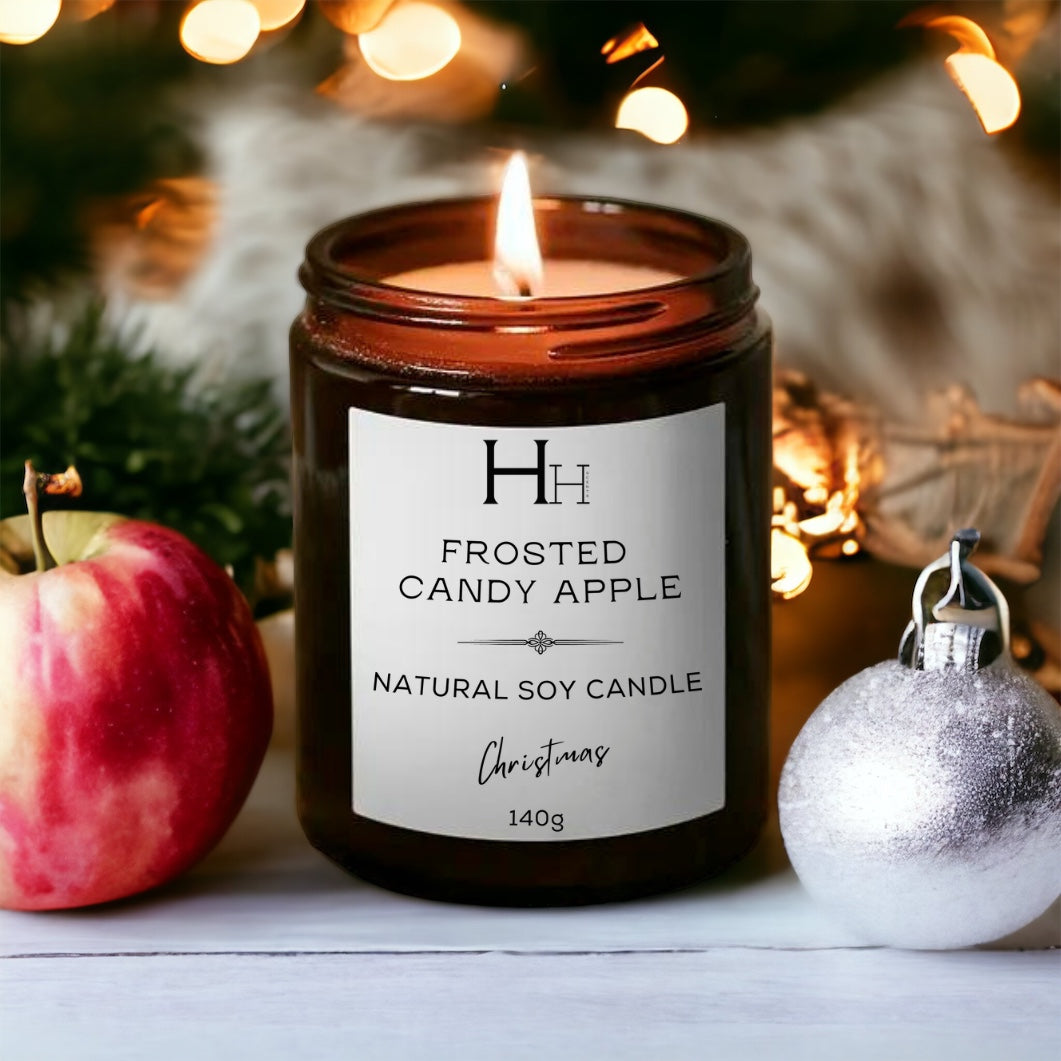 Introducing our Frosted Candy Apple Scented Soy Candle – the perfect way to bring the delightful aroma of a crisp, sweet treat into your home.