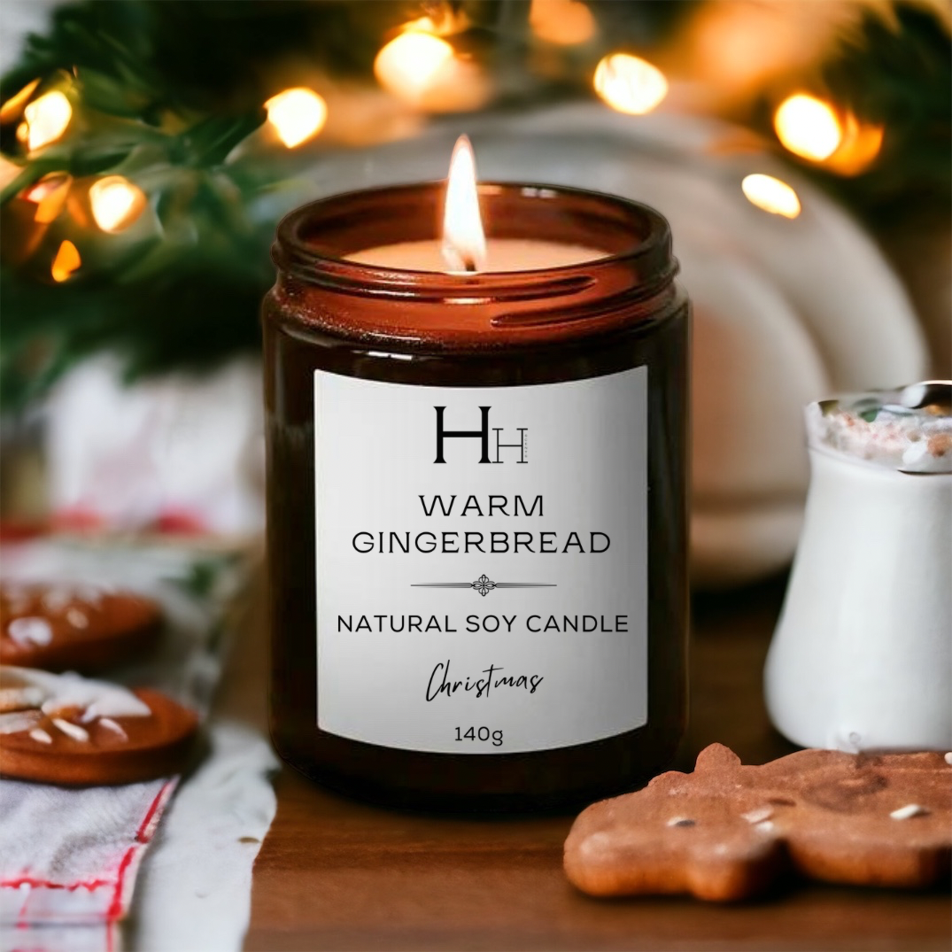 Introducing our delightful Warm Gingerbread soy candle from our Christmas Collection. A perfect addition to your festive season! Indulge in the heartwarming scent of freshly baked gingerbread, creating a cosy ambiance that embraces the spirit of Christmas.